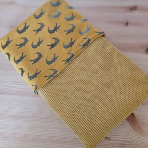 Fijne wiegdeken oker minky gemaakt van oker wafelkatoen en zachte minky fleece. 60×80 cm.